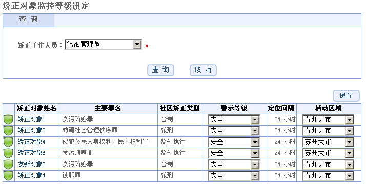 并自动生成各类统计报表。 1、矫正人员信息 为矫正对象建立档案信息库,包含矫正对象的姓名、住址、年龄、联系电话、入矫日期、解矫日期、 社区矫正类型、主要罪名等基础信息, 方便查询使用。并可以设定矫正对象的安全等级,不同安全等级的矫正对象采取不同的监管力度。 |